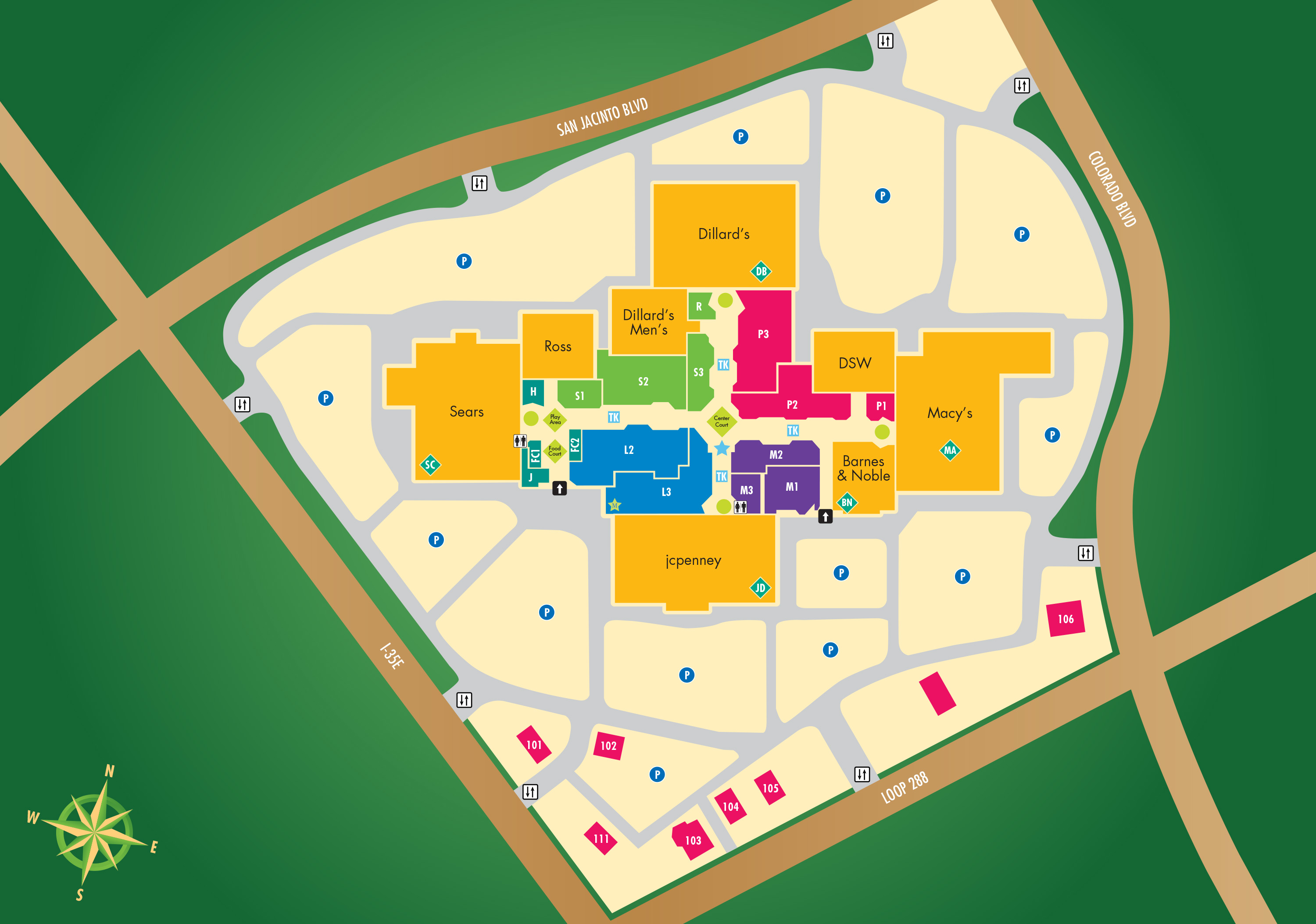 Click on a unit for an information pop-up of its stores, attractions and restaurants.